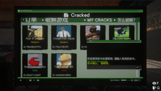 cmd继续输入 crack 游戏ID 刚刚显示的端口号,回车就开始了