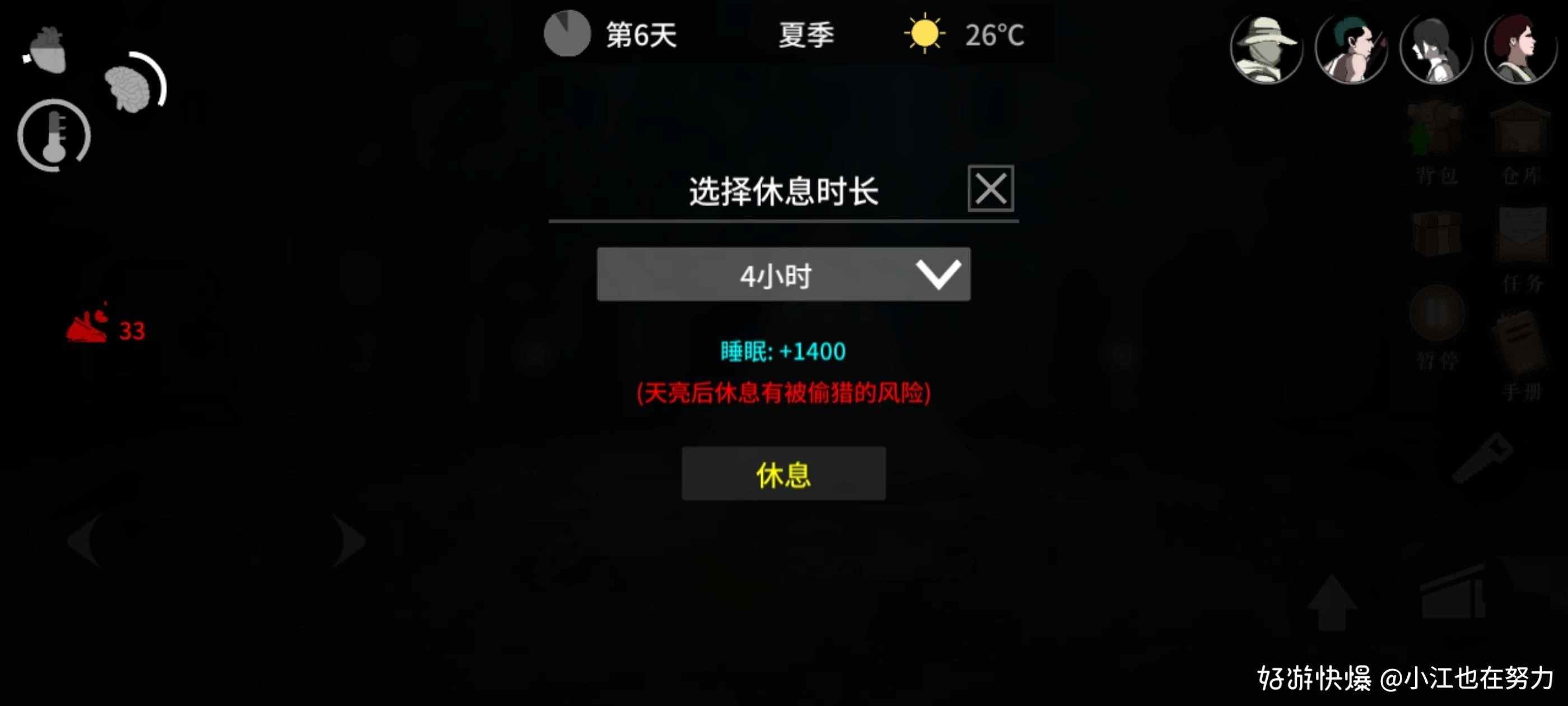 睡觉的时候是会有几率被偷盗的,所以我们需要注意休息的时长。