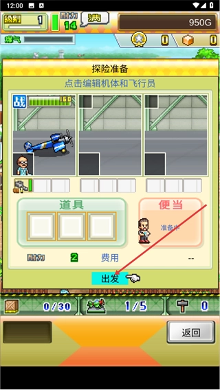 2、进入探险准备界面,确认机体与飞行员的配置状态后,点击界面下方的出发按钮,开启本次探险挑战。