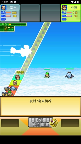 游戏采用回合制卡牌对战模式,红、蓝、绿、黄四色元素卡牌存在相生相克的关系,玩家可以搭配普通攻击、技能释放、生命恢复等不同功能的卡牌。当面对属性各不相同的空中怪物时,需要提前制定合适的战术,而能否策略性地使用手中的卡牌,是决定战斗胜负的关键所在。