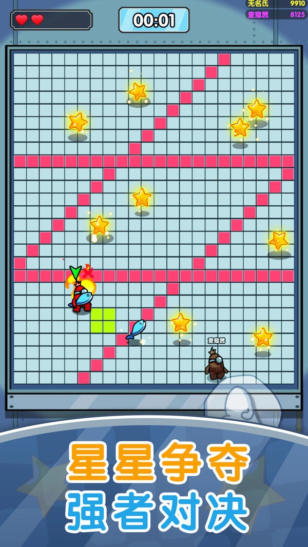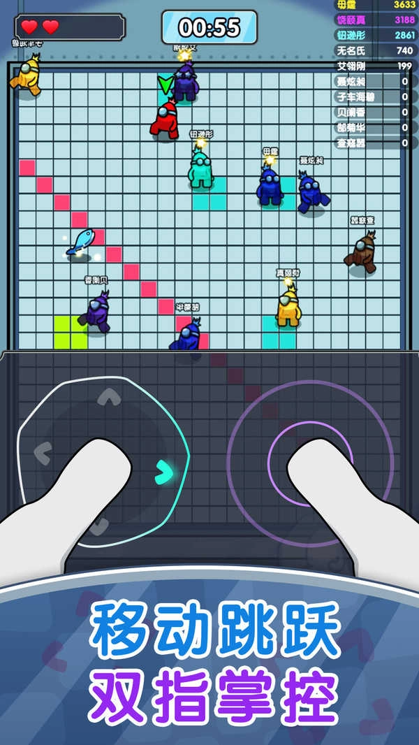 1、玩家需要带着你的小人在60秒内完成生存挑战。方块会越来越多,必须及时跨越障碍。