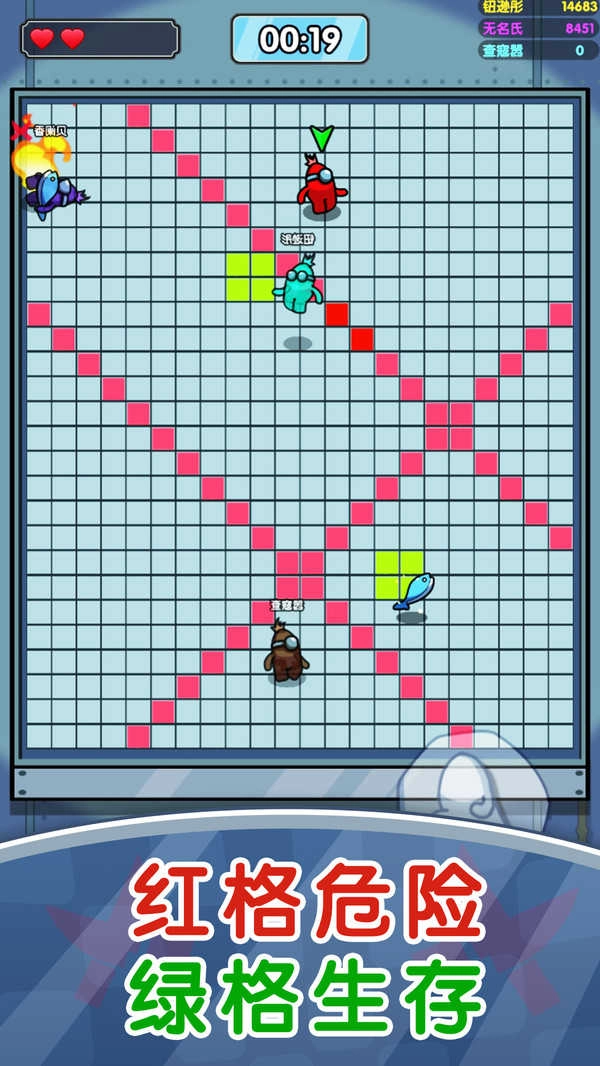 2、记住红色格子很危险,不能碰。只有绿色的格子可以站立。