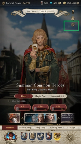 1、玩家在游戏中取得一定进展后,将解锁特别优惠,可以召唤[英雄、魔法娃娃、命令法术]。