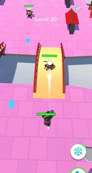 随意滑动屏幕寻找目标,避开对方的飞镖,同时攻击对手;