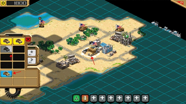 6、点击中间那个基地,会出现多个功能选项,点击下方的坦克,这时候上方也就出现了一个新的坦克。