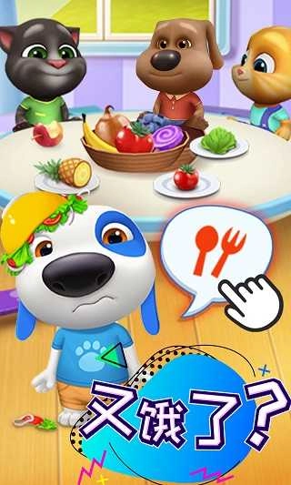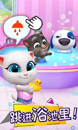 2、点击“会说话的汤姆猫家族”六位成员头顶的图标,可以喂它们吃饭,给它们洗澡。你一定会成为一个最好的主人,而它们也会成为你的最好的宠物伙伴。