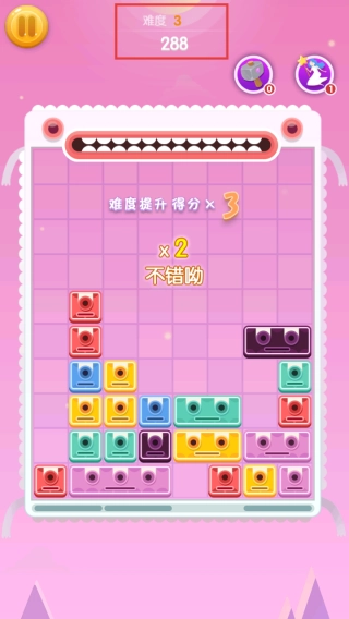 3、消除推进后,难度不断提升,利用得分加成,快速消除方块获得高分。