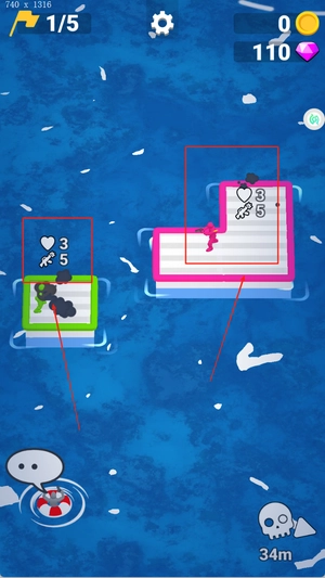 1、挑选一种颜色,借助海洋里漂浮的其他残骸来加固你的木筏,然后直面对手!