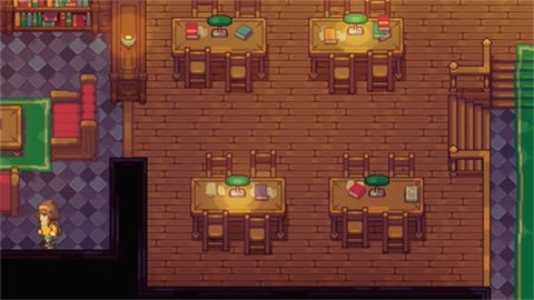 2、对话结束后,角色可以走出房屋向右转,一直往前走进入餐厅,在这里可以品尝到各种不同的美食。