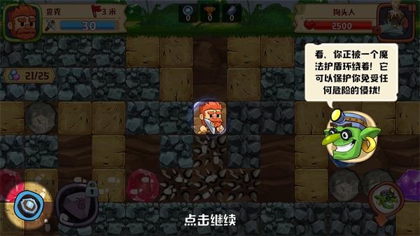 2、在游戏中要尽可能多的收集宝石,还可以使用魔法护盾保护你免受任何危险的侵扰。