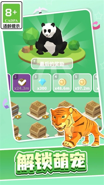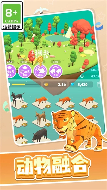 1、巧妙地将相同动物合并,释放能量,清扫屏幕,玩法简单。