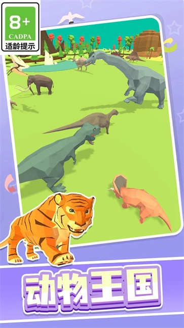真实侏罗纪世界是一款休闲耐玩的合成类动物养成游戏,以侏罗纪时代为背景,为玩家打造了一个全新的精彩动物世界。在最新的安卓手机版中,游戏采用简约3D建模,提供了丰富多样的动物,从低等级到高等级一应俱全。玩家只需将两只相同的动物合成,就能解锁更高级别的动物。