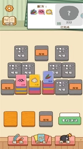 1、随着游戏进程的推进,你会解锁更多食材与特殊道具,使合成玩法既更具挑战性又充满趣味。