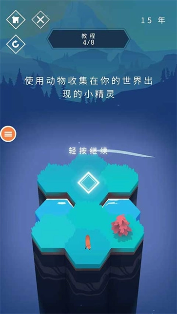 4、若干树连起来可以合成树林,树林再合成小屋,小屋合成村庄,依次类推,每次行动都会带来时间的流逝,但森林的树越多,你的世界的年岁越长。