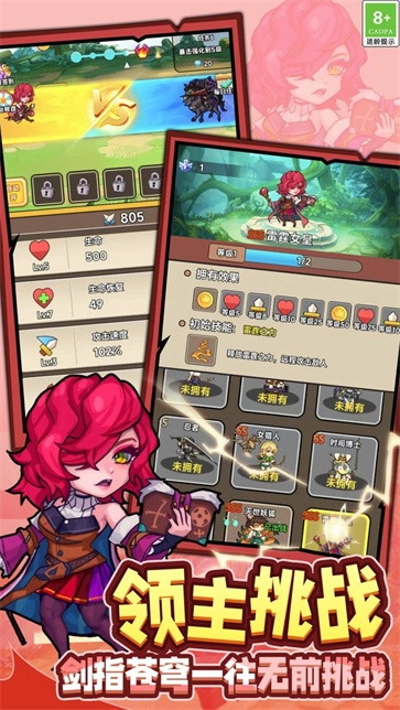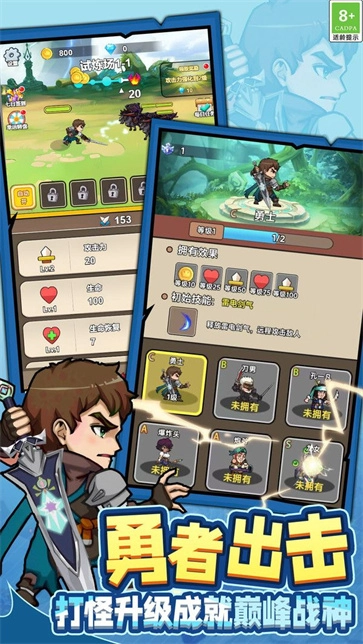 4、不断升级勇士的攻击力和生命值,增强自身战斗能力,轻松地应对敌人。