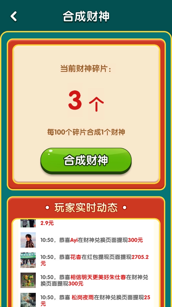 3、合成出的财神不仅有收藏价值,还能直接用来兑换各种福利,数量越多,兑换的奖励就越丰厚。