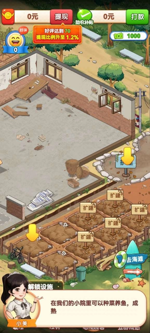 3、玩家可以通过种植、养殖等经营活动来获得收入和奖励,提升自己的生活品质和小屋的等级