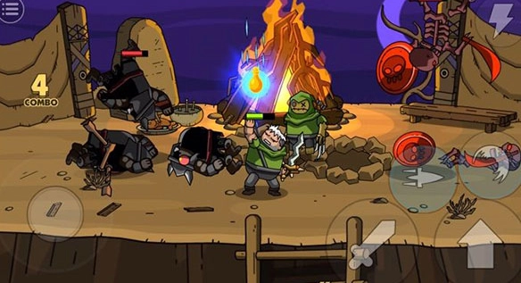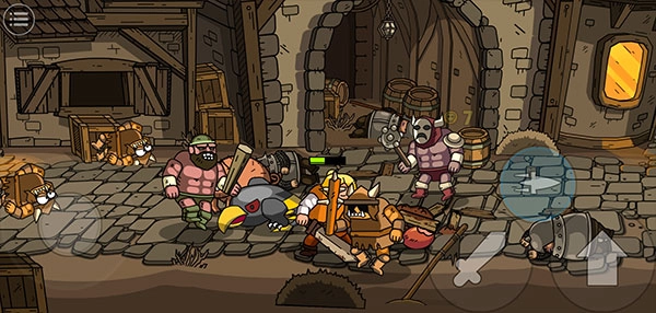 3、这款游戏的操作非常简单,左边是移动,右边是跳跃、攻击、技能,消灭所有敌人就可闯关成功