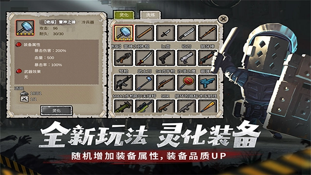 游戏操作十分简单,玩家点击屏幕即可控制角色移动,点击僵尸就能开启攻击模式。操作虽简单,但游戏的自由随机性和昼夜更替系统,都会给战斗带来不小的考验。要想在每次僵尸遭遇战中夺得战斗主导权,无脑刷刷刷一定是不行的。幸存者们还须仔细观察僵尸的移动速度和攻击频率,选用正确的武器将其一举拿下。游戏需要考虑策略对抗元素,这也颠覆了玩家原有的战斗体验,带来前所未有的末日战斗代入感!