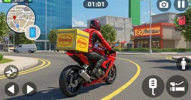《送货骑手生活模拟器》是一款主打骑手模拟闯关玩法的游戏,玩家将化身为一名送货骑手,在虚拟构建的城市里往来穿梭,承接并完成各类配送任务,沉浸式体验贴近现实的骑手日常。