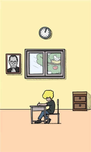 5、第5关:先捡起右边的拖把并放在墙上的照片上让其变成棍子,在等小伙子伸出看答案的一瞬间点下去即可。