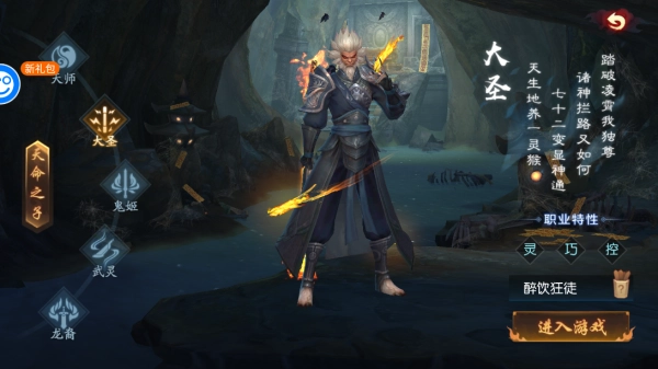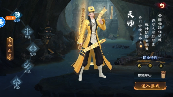 2、选择职业并为自己的游戏取一个游戏名