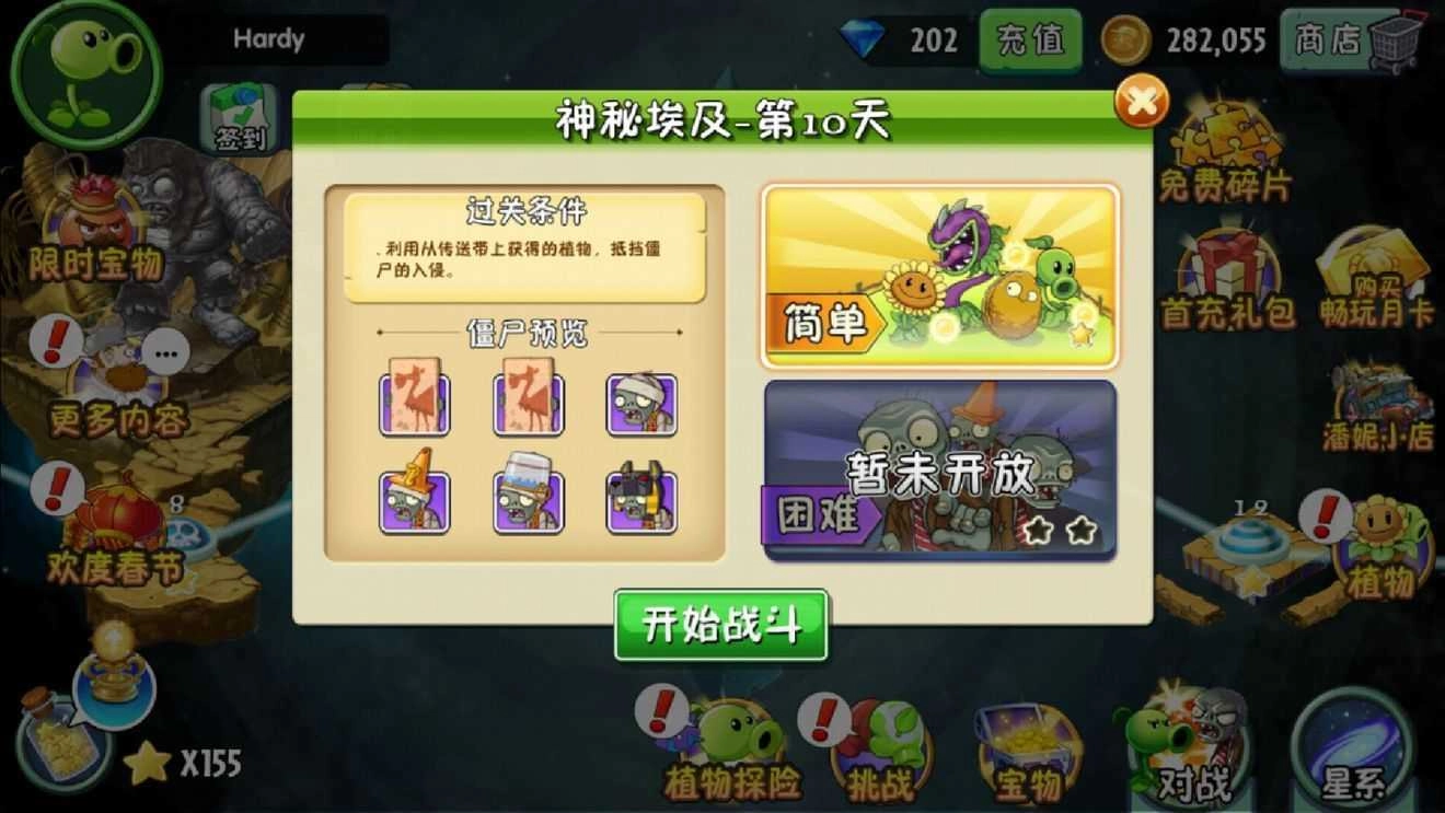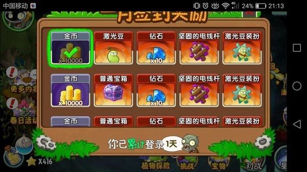 2、直接到第5天,这个是植物探险,可以得到新的植物碎片。第六关,就会出现这种有毯子的僵尸,属于组团型的。