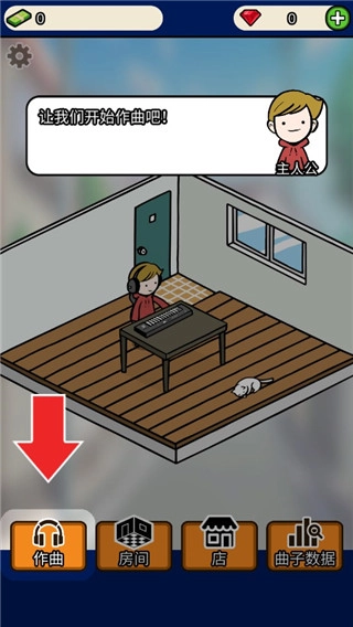 1、开始游戏后,首先要发布一张歌曲,点击下方的作曲。