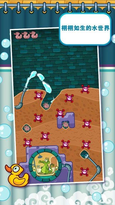 《小鳄鱼爱洗澡 中文版》是一款设计精巧的益智闯关游戏,游戏里的小鳄鱼特别爱洗澡。玩家可以体验中文版内容,在关卡中需要引导水流避开干净水路中的机关与污染物,成功将水送到小鳄鱼的浴室。此外,地图上还藏着不少可收集的元素呢,还在等什么?感兴趣的话就去试试吧!