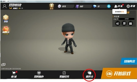 1、主界面“开始游戏”按钮庞有一个“道具卡”按钮,点击会进入道具卡的整理界面。