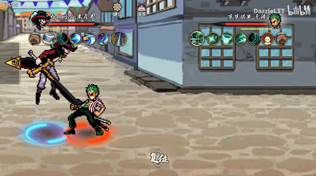 4、进入关卡后,你可以自由使用技能进行战斗,上方键位设置可以调整摇杆和技能按键,场景设置可以调整游戏背景画面。