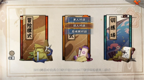 1、首先进入游戏后,玩家会看到三种不同的模式,分别是冒险模式、对战模式和训练模式。