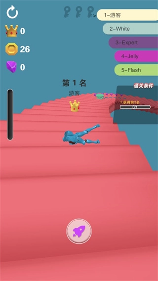 2、在这个巨大的圆形楼梯中向下方不断的滚动,控制方向避免直接掉下去会导致失败。