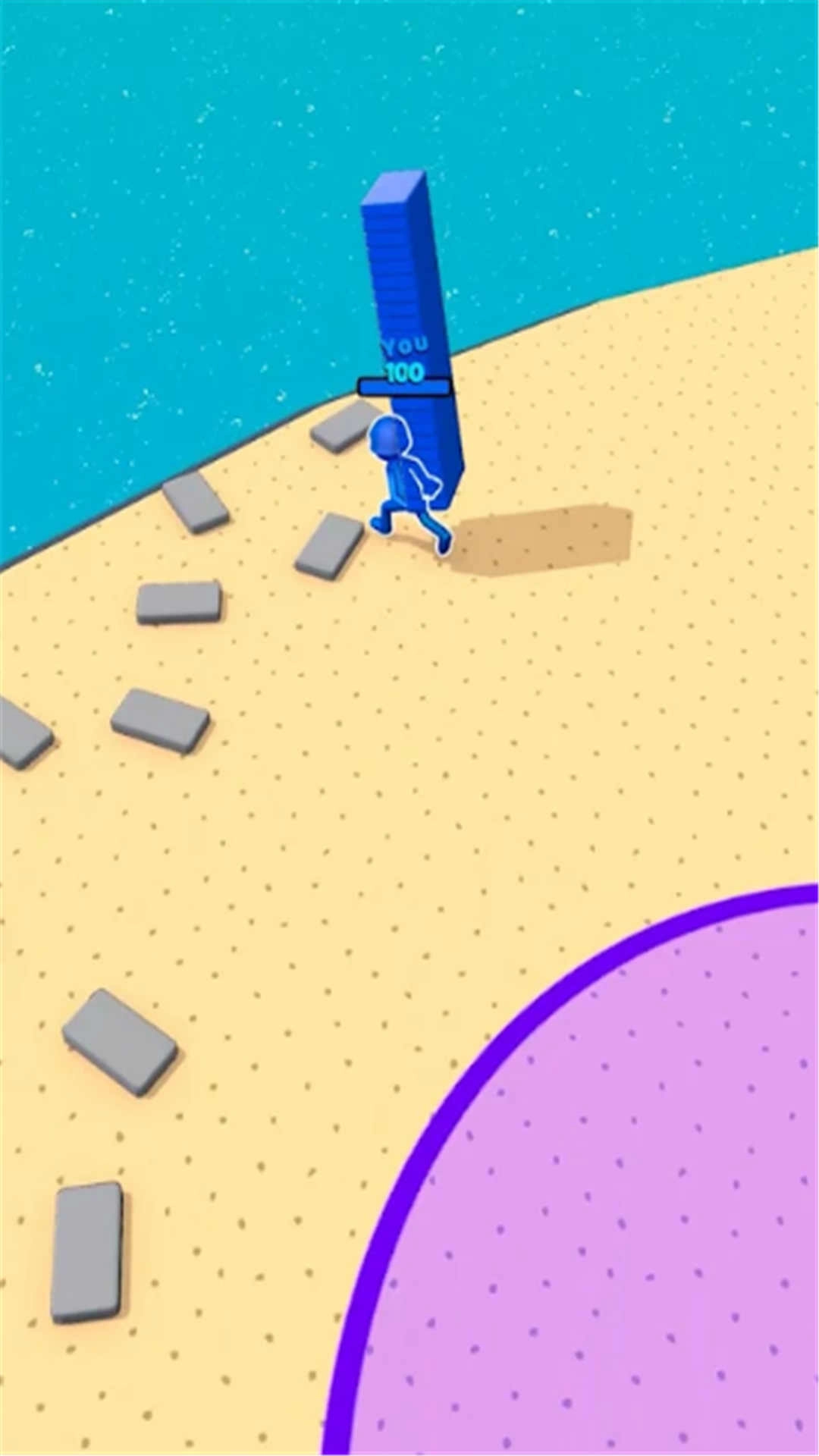 5、材料会持续收集并快速移动,其背后的高度对应着材料的数量,在达到上限前得赶紧回到建造地点把材料放进去。