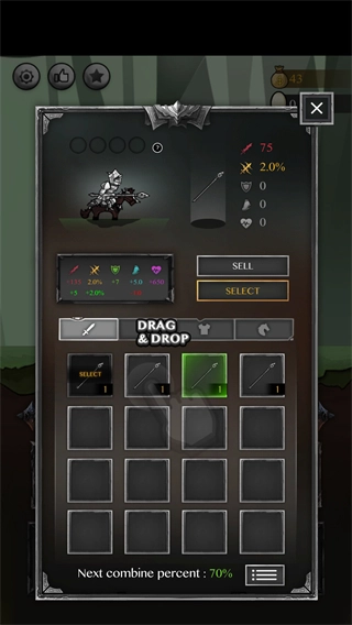 3、丰富不同的武器装备和技能,收集极品装备打造最强骑士;