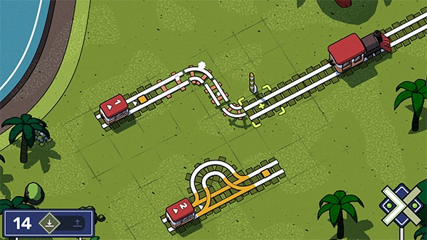 这一关左右都有一节火车,首先我们需要知道两节火车的顺序,然后制造出两节铁轨,需要避免两节火车同时到达相撞,第二节铁轨可以在第一节铁轨的线路上绕一圈,这样就完美的解决了这个问题。