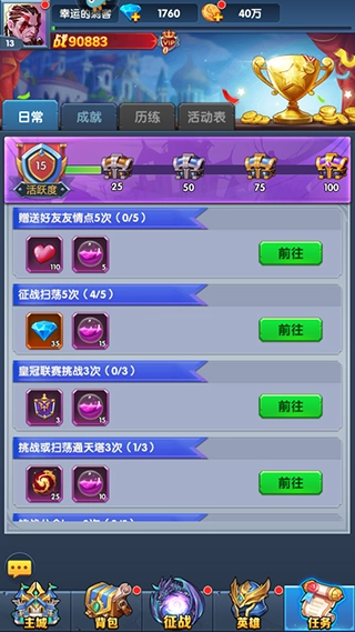 ●每日可在试炼场中挑战日常副本、参与各种玩法可获得各种收益。