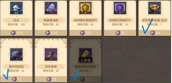 每周商品:精英召唤券(2000魔晶/张)优先于蓝色残响自选(1500魔晶/箱),前者单次召唤期望战力提升3500点,后者建议在角色成型后补充特定套装,矿石购买优先级最低。