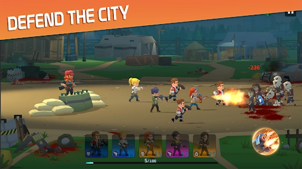 4、点击下方刷新好的勇士进入战斗阻止僵尸的进攻,后方的射手只有僵尸到一定距离才会进行攻击。