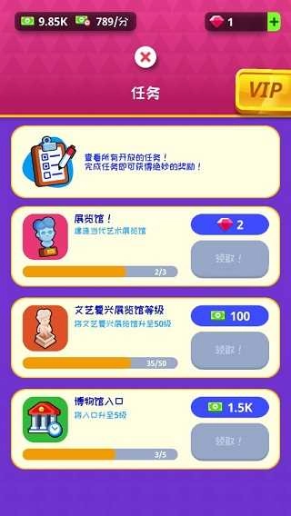 建造、升级、管理,一步步把你的小小展馆打造成世界级文化地标,开启专属于你的艺术与财富帝国!