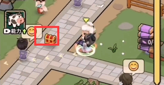 2、这个时候我们先不要立马将老奶奶送到指定地点,先去找到游戏宝箱并打开