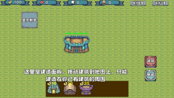4、屏幕下方为建筑菜单,可自由拖动各类建筑至地图中进行部署。不同建筑消耗资源各异,产出效率也各不相同,需根据当前局势合理规划布局,实现资源最大化利用。
