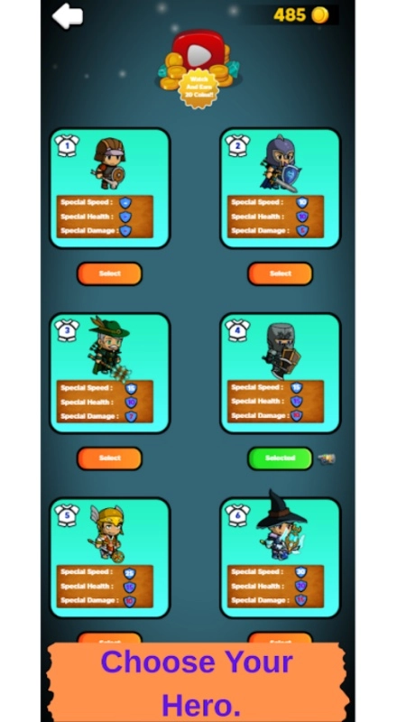 英雄选择丰富多样:游戏内提供多个独具特色的英雄等待解锁,每个英雄都具备专属的技能与属性,玩家能够逐步收集并熟练掌握所有英雄,从而感受不同的战斗方式与策略组合。