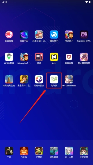 1、在手机上找到淘气侠应用。