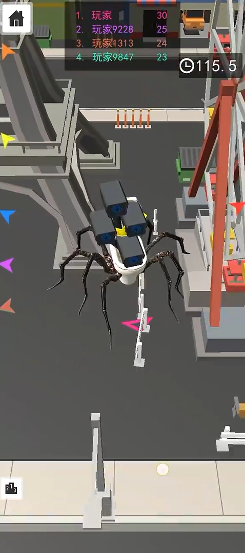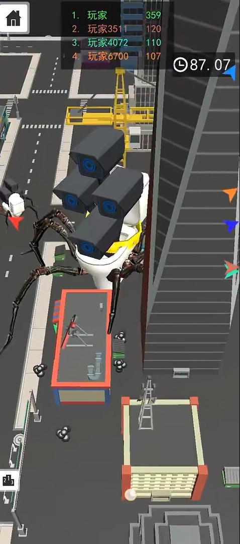 1、玩家操控一只变异马桶怪兽,在城市街头游荡,借助吸收能力吞噬各类物体。