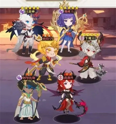 二、高手进阶阵容:阿努比斯+莉莉丝+地藏王+孙悟空+牛魔王+日游神。
