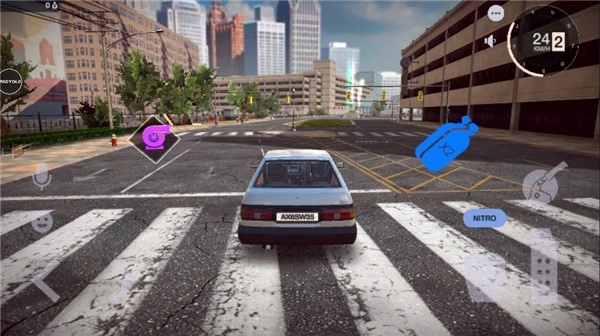 3.通过左侧的方向键来控制汽车的移动,右边进行刹车和加速,蓝色的是氮气加速功能