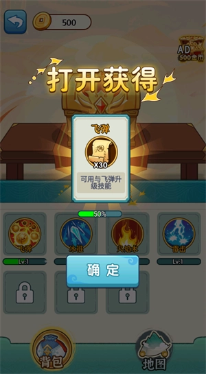 3、获得金币后可以打开宝箱,升级或者获得新的功法