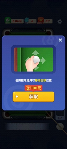 4、还能使用摆球道具,可以简单移动白球的位置。