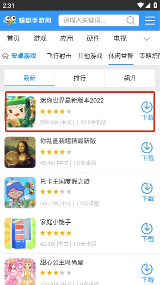 4、如果用户有所想的目标软件或游戏,我们可在上方输入关键字快速的检索